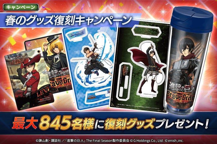 - 新型立体機動のキャラや春のグッズ復刻キャンペーン実施中