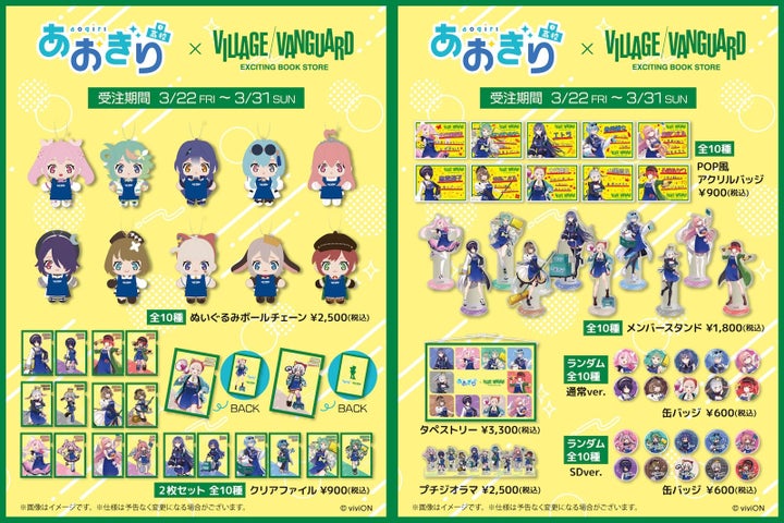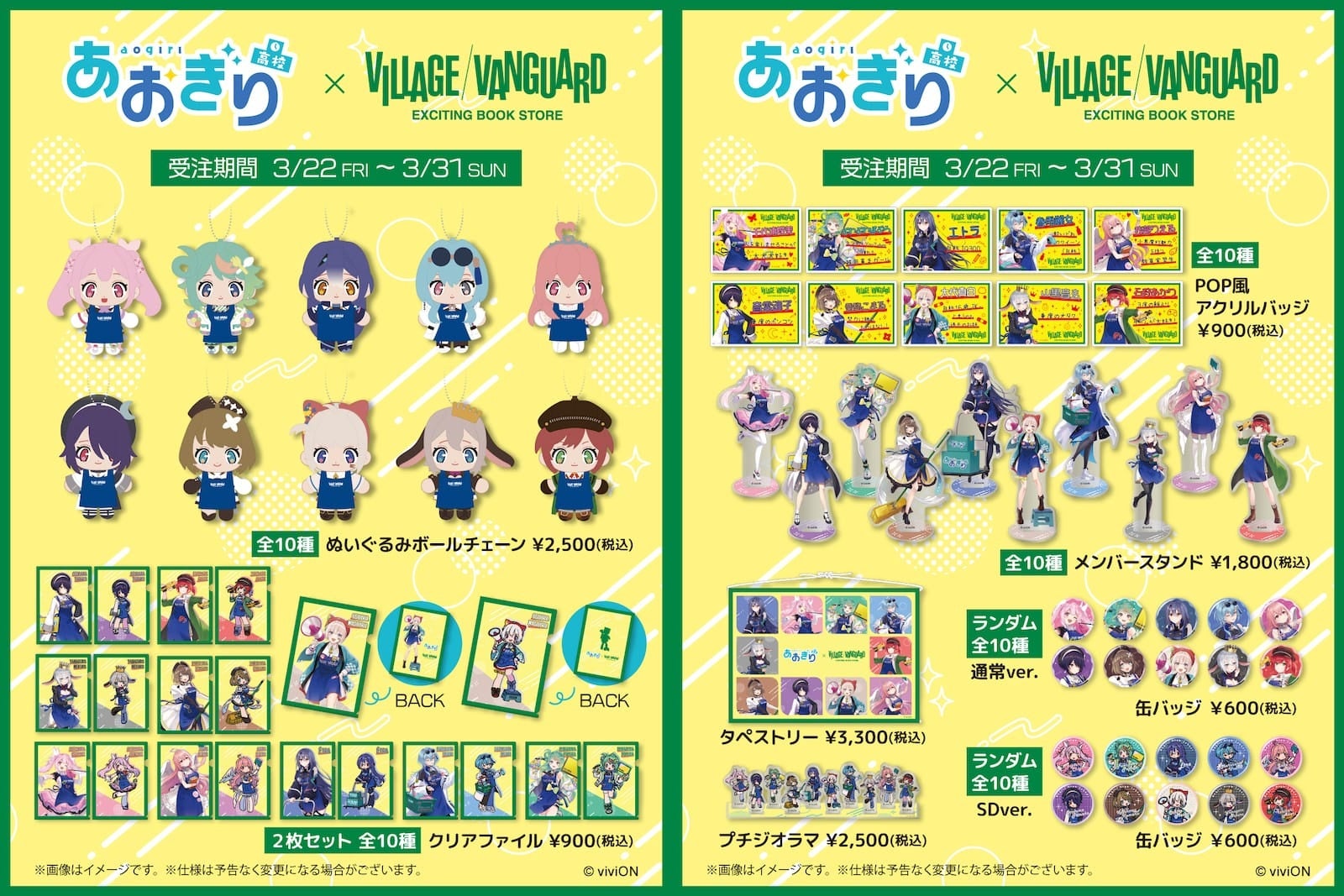 2024年3月22日から、VTuberグループ【あおぎり高校】とヴィレッジヴァンガードのコラボグッズがオンラインストアで販売されます。