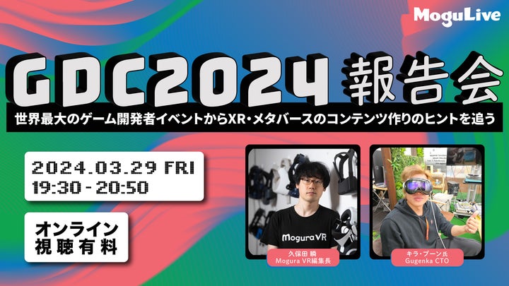 Mogura VR編集長の久保田氏やGugenkaのCTOキラ・プーン氏が登壇し、XR・メタバースの最新動向やビジネス観点について報告します。