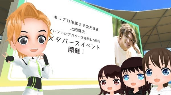 株式会社ホリプロは、メタバース空間にて、株式会社ホリプロ所属の上田堪大メタバースイベント「堪大、アバターになるんだい!」を2023年6月11日(日)に開催することを発表いたしました。https://metakawaii.fashionstore.jp/