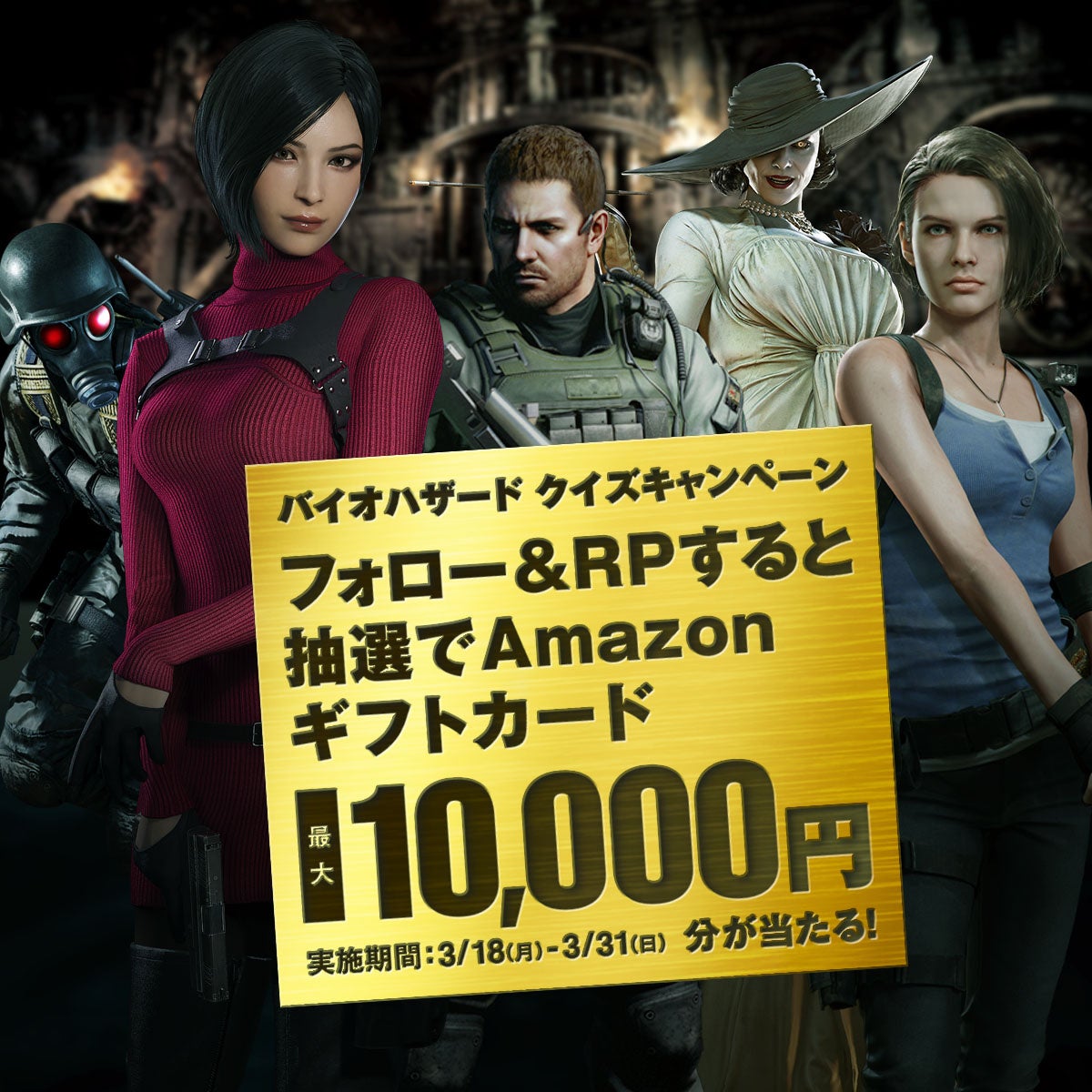 「バイオハザード」ブランド公式アカウント(@REBHPortal)が3月18日から『バイオハザード クイズキャンペーン』を開始します。