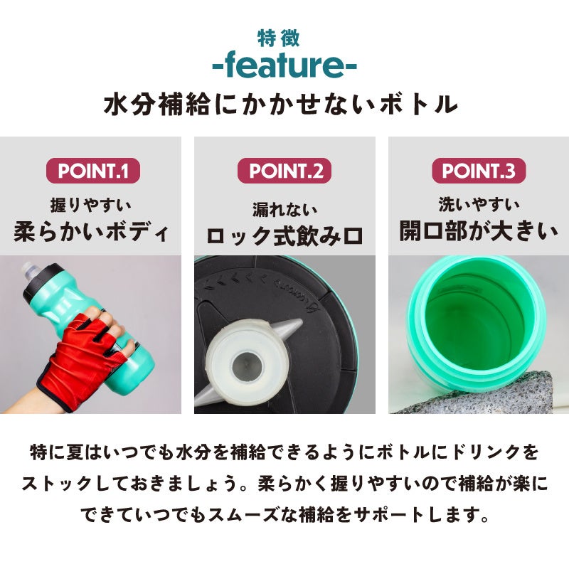 - 610mlの大容量で、握りやすく水が出る仕組み。ロードバイクやクロスバイク、マウンテンバイクに最適。価格は1,799円(税込、送料込)