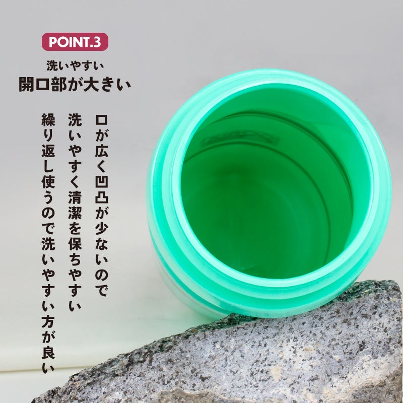 口が広く凹凸が少ないので、洗いやすく清潔を保ちやすいです。
