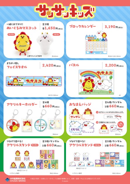 イベントではぬいぐるみマスコットやパズル、まちがい探しフェイスタオルなどのアイテムが販売されます。