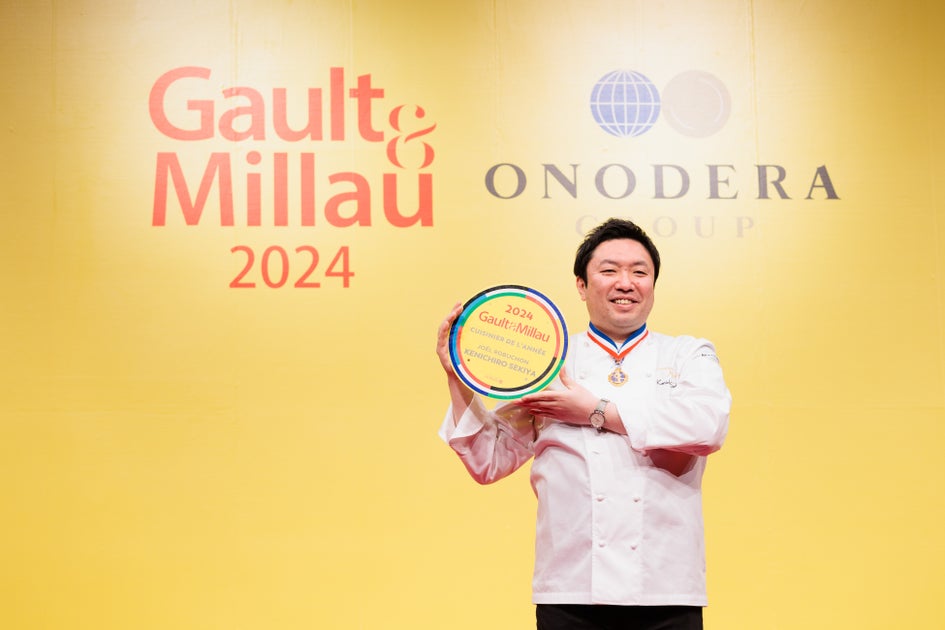 ジョエル・ロブションのエグゼクティブシェフである関谷健一朗が「今年のシェフ賞」を受賞し、感謝のコメントを述べました。