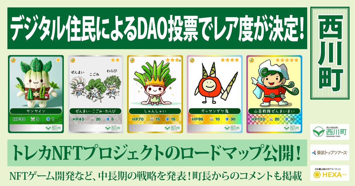 西川町は地域振興のため、山菜トレカNFTを通じて魅力を発信しており、今後の展開やロードマップも公開されています。