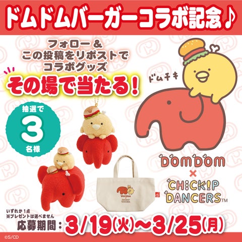 サンエックス株式会社が「チキップダンサーズ」と「ドムドムハンバーガー」との初のコラボを発表しました。