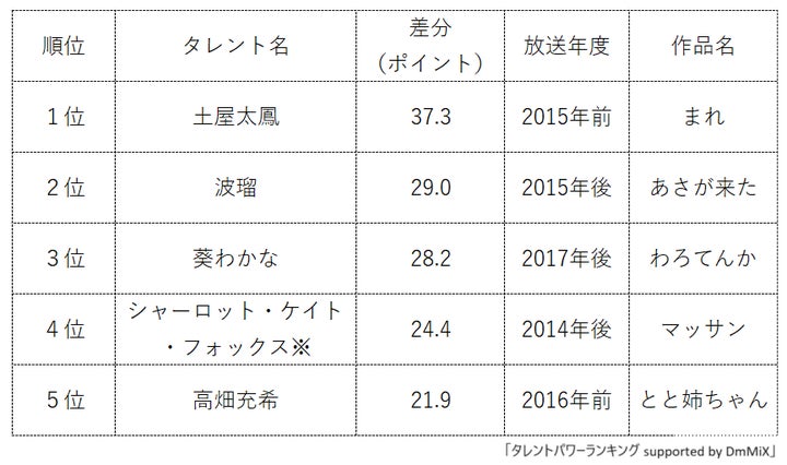 株式会社アーキテクトが実施するタレントパワーランキングにて、NHK朝ドラヒロインの過去10年の上昇ランキングが発表されました。