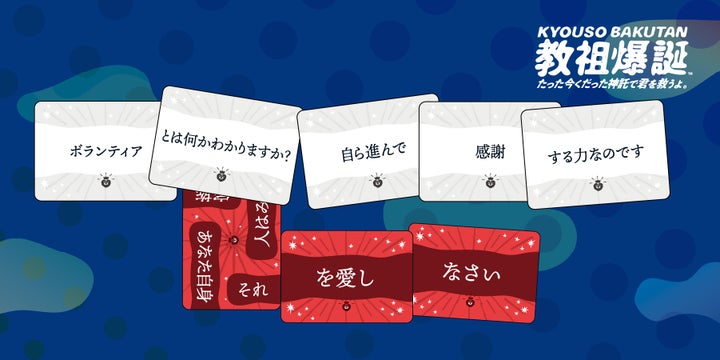 プレイヤーは教祖となり、神託カードを組み合わせて悩める人間を救います。