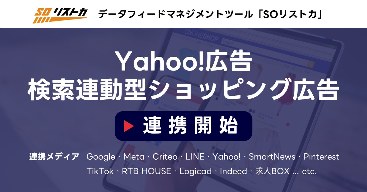 SOリストカは、自社開発のツールを使用して、GoogleやMeta、Criteoなどのフィードと連携し、Yahoo!広告の「検索連動型ショッピング広告(SSA)」にも対応しています。