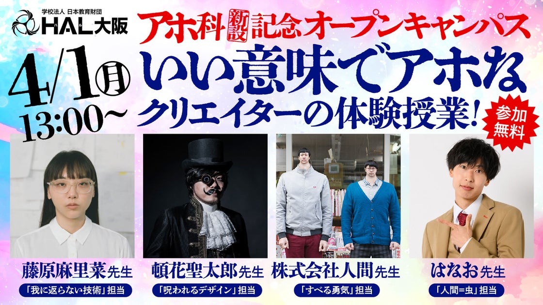 HAL大阪のアホ科新設記念オープンキャンパスでは、業界トップクラスの特別講師が参加します。