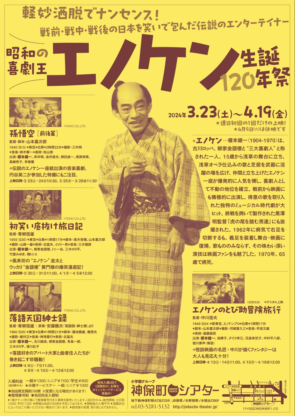 神保町シアターでは、3月23日(土)からエノケンと山田太一・木下惠介の特集上映がスタートします。