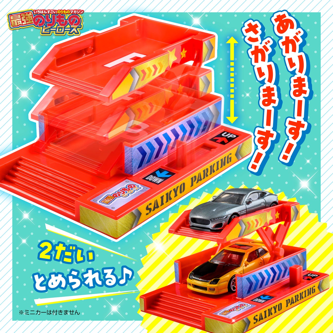 最強のりものヒーローズ7-8月号はミニカーと遊べる! 2階建ての立体パーキングおもちゃが付録♪ タイムズパーキングとコラボの楽しい工作つき☆