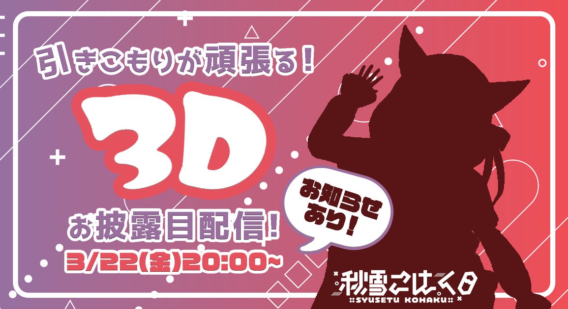 3Dモデルのお披露目配信は3月22日20:00に予定されており、新しい情報も発表される予定です。