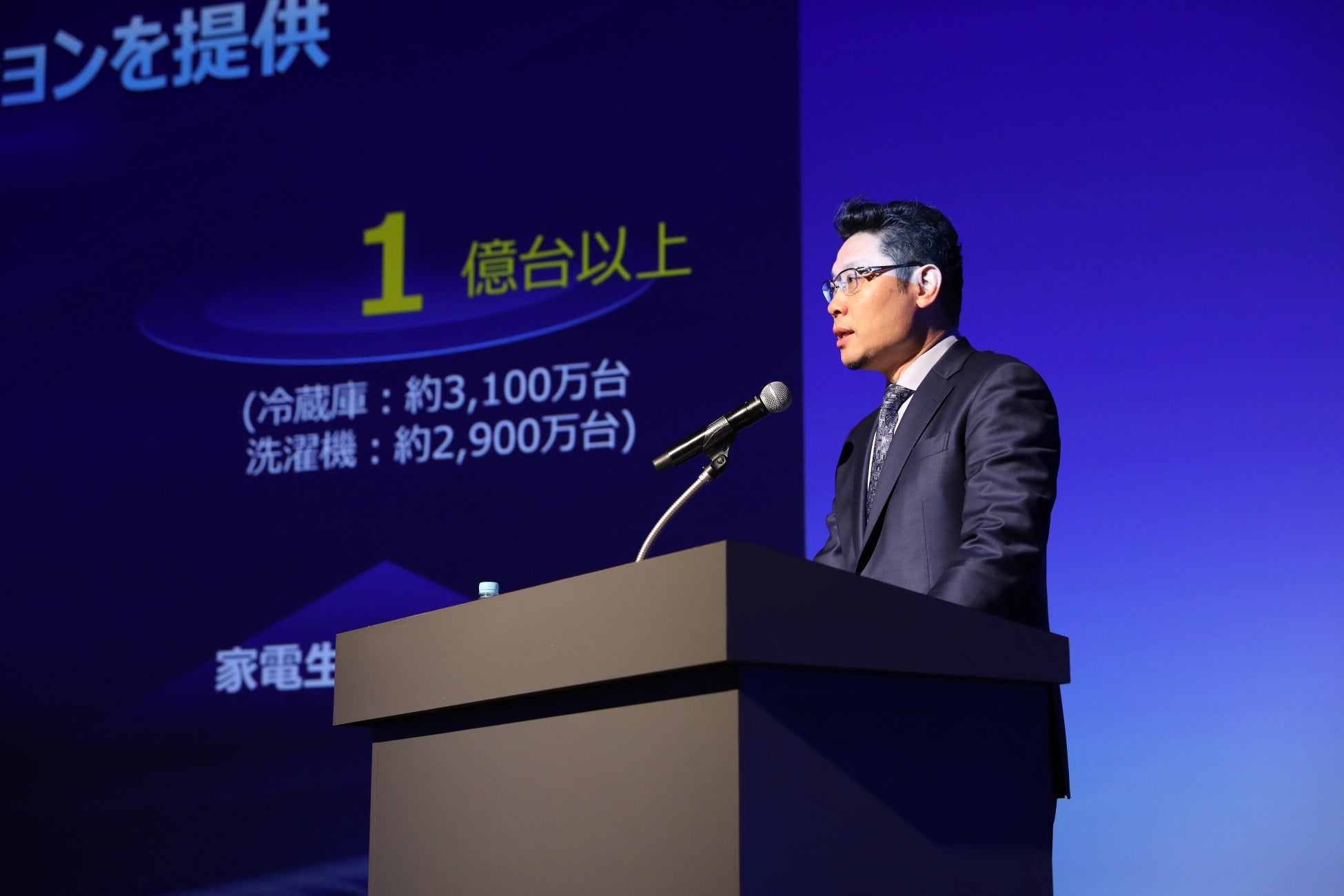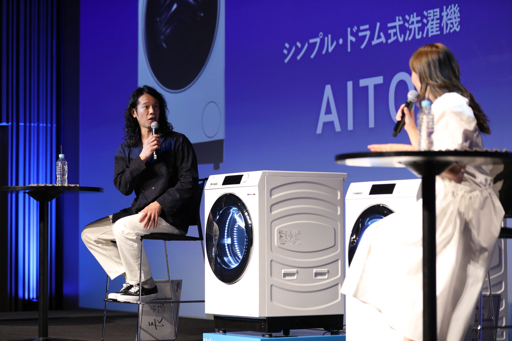 発表会ではHaierの製品力や世界シェアNo.1を誇る実績が紹介され、庄司智春さん・藤本美貴さん夫妻も登場しました。