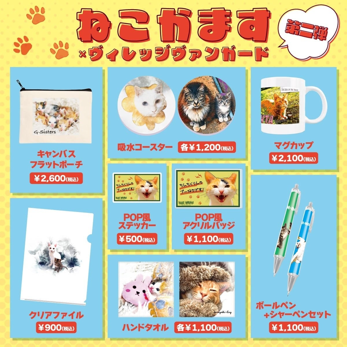 2024年3月21日(木)10:00から、ヴィレッジヴァンガードオンラインストアで【ねこかます】第二弾コラボグッズが発売され、第一弾コラボグッズも再販されます。
