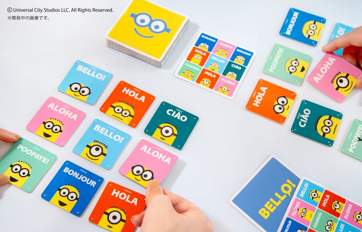 新作はミニオンをそろえたりあいさつをそろえたりするルールで、脳の混乱を楽しめるスピードパズルゲームとなっています。