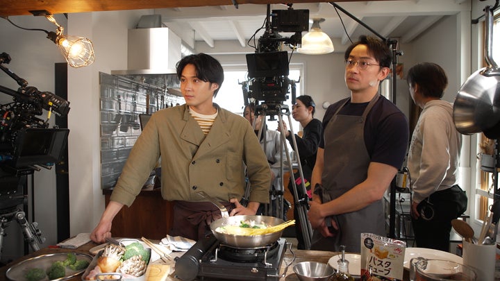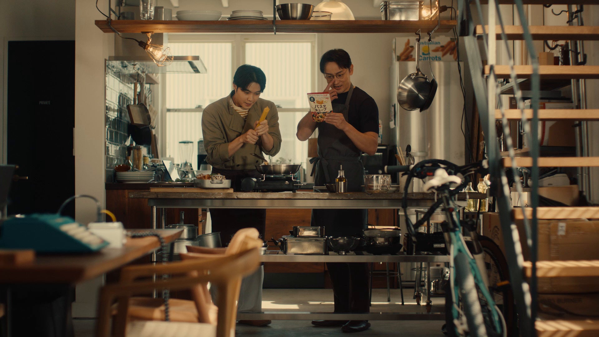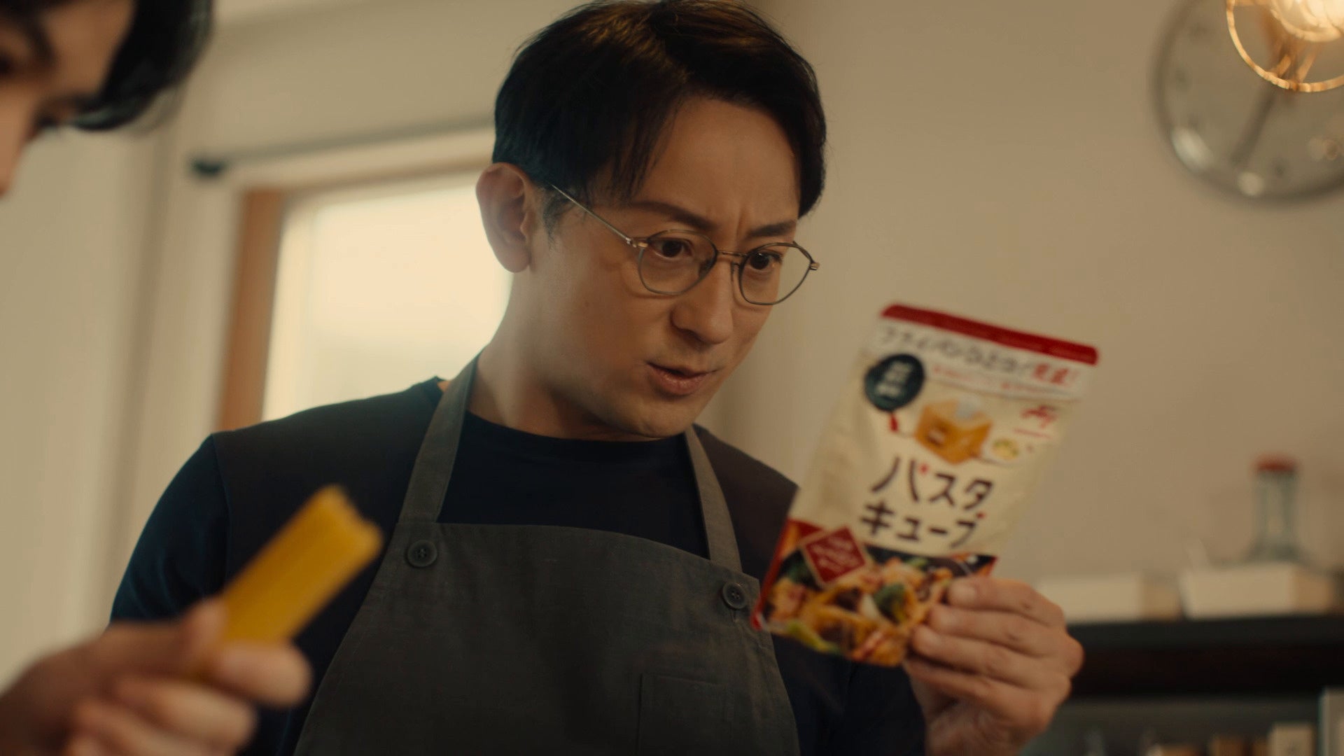 CMでは、磯村さんが初めて「パスタキューブ™」を使ってパスタを作るシーンから始まります。