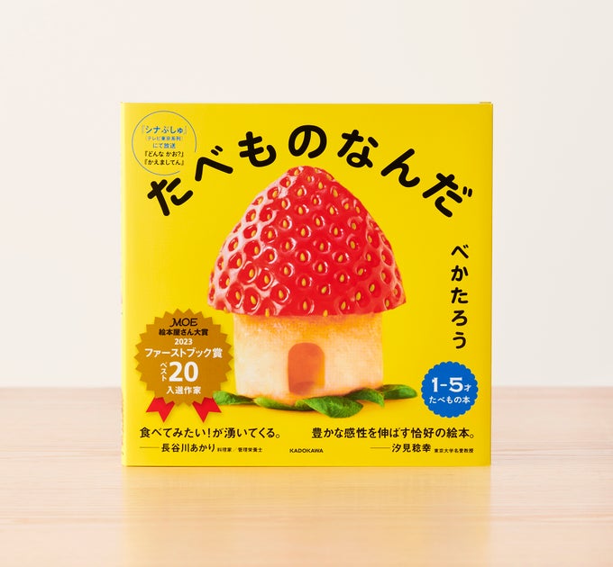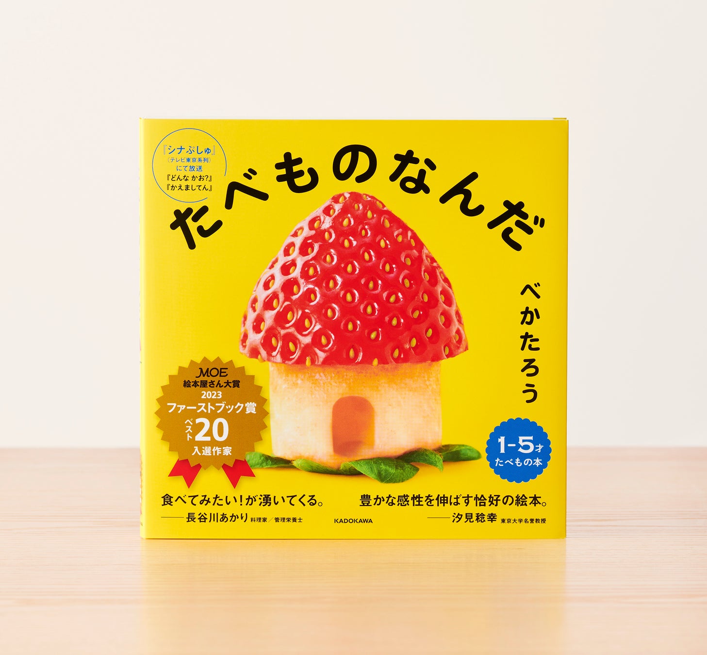 写真絵本『たべものなんだ』は、本物の食べ物を使用して撮影されており、子どもたちが絵本から実物を見ても違和感なく理解でき、食に興味を持つことができます。
