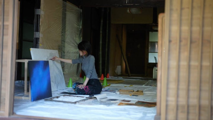 彼女は青色に強い魅力を感じ、空との対話から青の精神世界を表現しています。