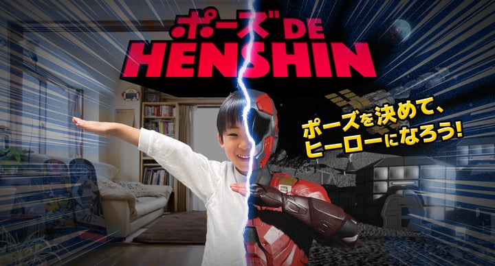 「ポーズ DE HENSHIN」は、憧れのヒーローやキャラクターに変身できる体験型デジタルコンテンツです。