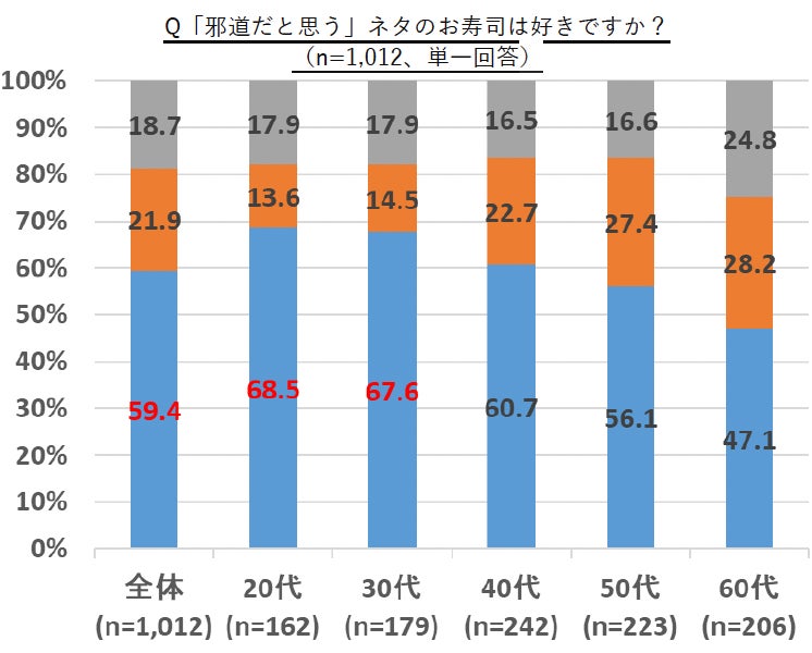 全体の82.6%が回転寿司を好きだと回答し、20代~40代では「邪道」なネタが好きな人が多い結果も出ています。