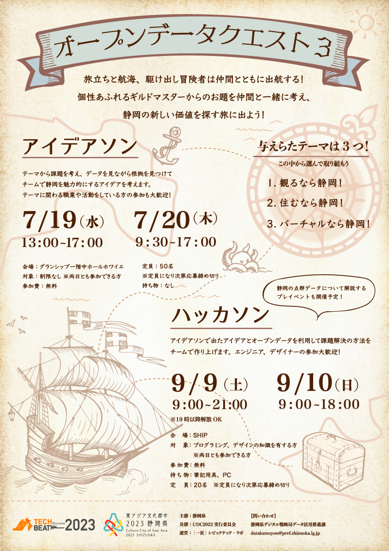 「オープンデータクエスト3」で地域課題を解決しよう!静岡県で開催されるアイデアソン・データソン・ハッカソンに参加しよう。プログラミング・デザインに関する知識がある方、どなたでも参加可能。