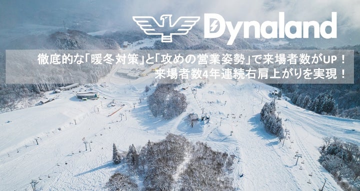 ダイナランドでは暖冬対策や攻めの営業姿勢により来場者数が増加し、ナイター営業やスキーレーシング専用バーンの提供など新たな施策を展開しています。