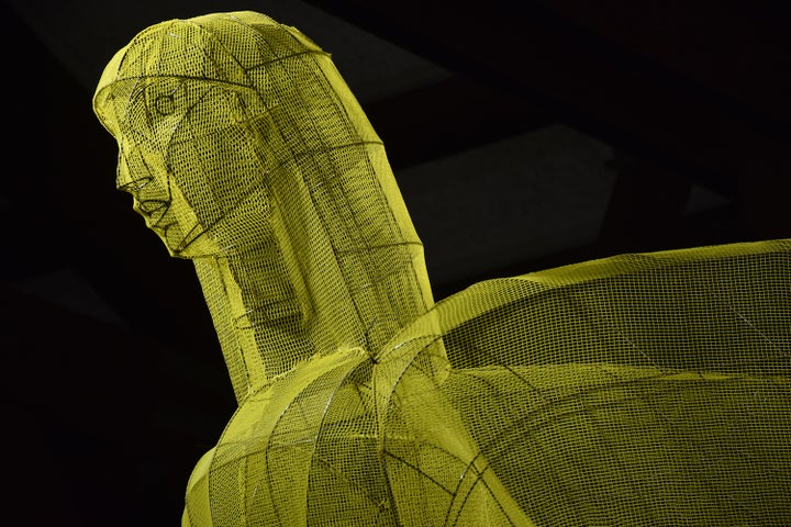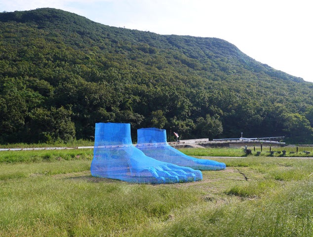 最新作「鉄骨のゴッデス」では防風ネットを使用し、展覧会では約60点の立体作品が展示されます。
