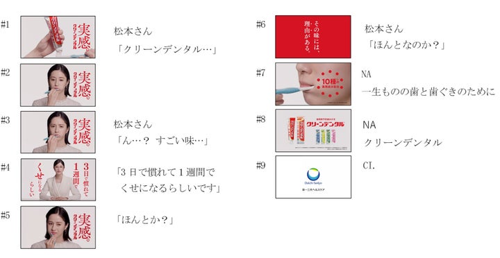 「クリーンデンタル」の新TV-CMは、松本若菜さんが初めて使用する様子を描いた「初トライ」篇と、松本さんがクセになるとレポートする「くせになる」篇の2本で構成されています。