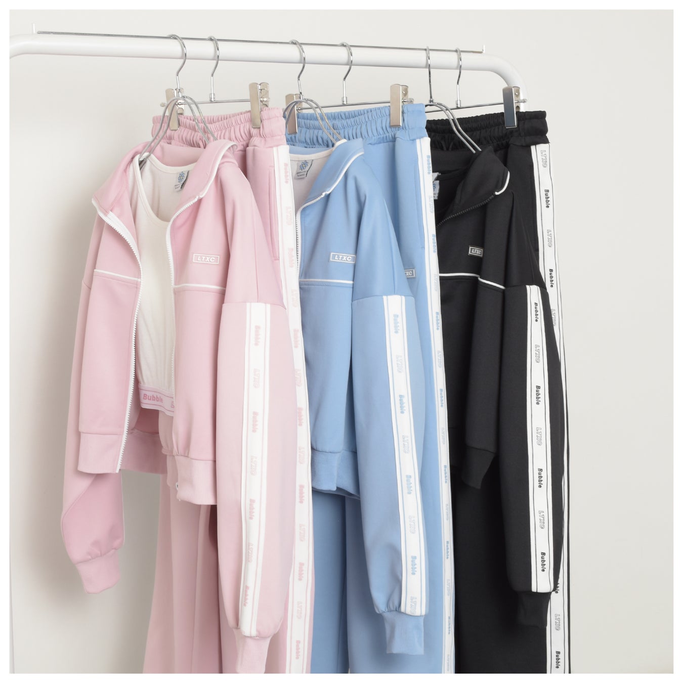 ジャージセットアップとインナーの3点セット、Tシャツとスウェットのセットアップがあります。