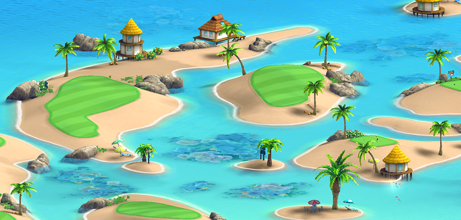 このコースは白い砂浜と群島が特徴となっています。群島によってルート分岐があるホールが幾つもあるので、ご自身に合った攻略方法を探してみてください。