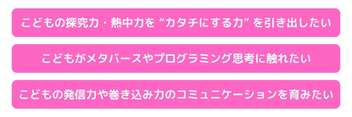 子どもたちのクリエイティブな力を引き出す取り組みで、世界をつくるクリエイターとして成長する機会です。