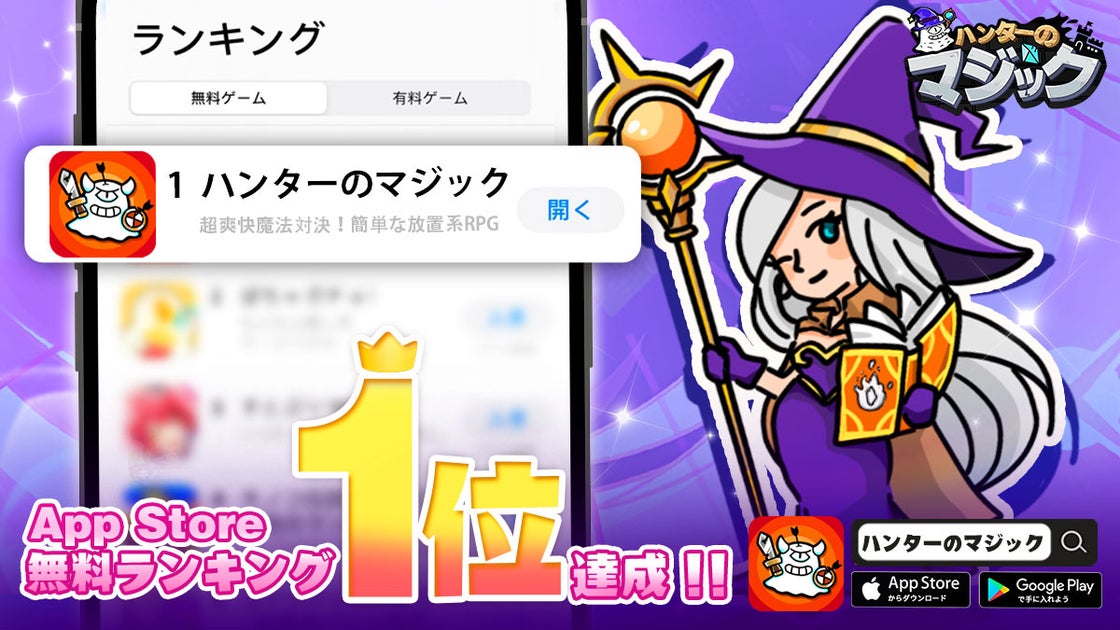 ローグライクタワーディフェンスRPG『ハンターのマジック』がApp Store無料ゲームランキングで第1位を獲得しました(2024/3/21時点)。