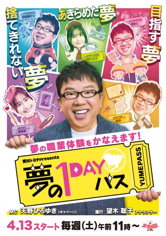 MCの天野ひろゆきと初回ゲストのみちょぱがスタジオ収録に臨み、番組では夢の職業体験をする「ドリーマー」の姿や職業を極めた「スペシャリスト」の紹介が行われます。