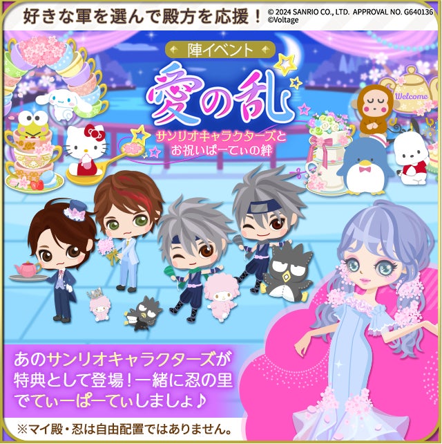 株式会社ボルテージが「恋乱LB~華の章~」とサンリオキャラクターズとのコラボキャンペーンを開催します。