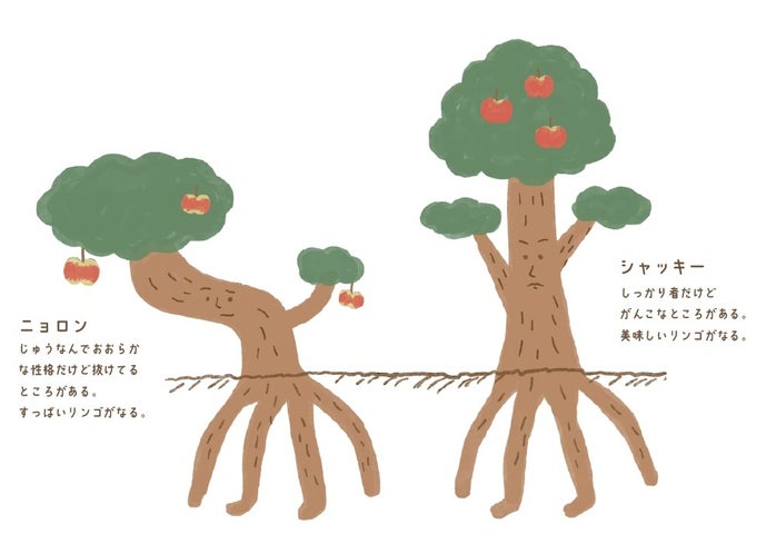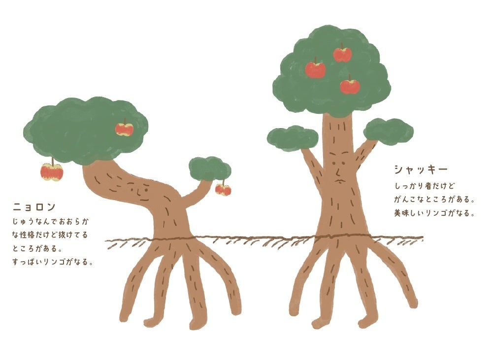 - 「おかしなりんごの木」: ニョロンとシャッキーの成長物語