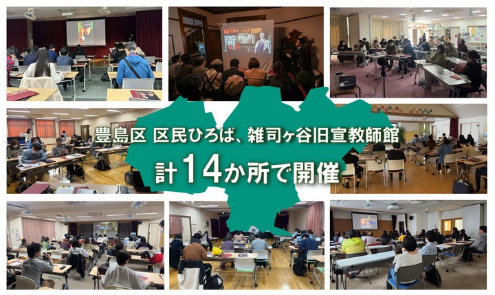 - 約300名が参加し、豊島区の協力で14か所で開催された