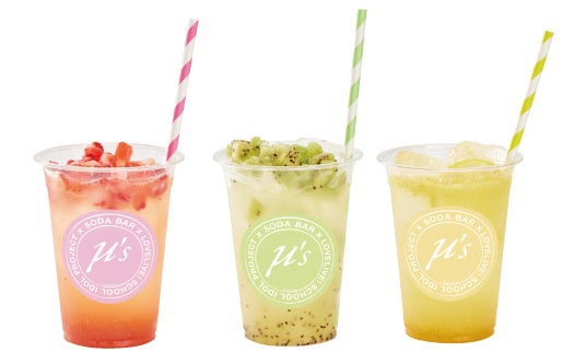 SODA BAR横浜では、「ラブライブ!」のμ’sメンバーをイメージしたボトルドリンクとユニットごとのカップドリンクを販売しています。