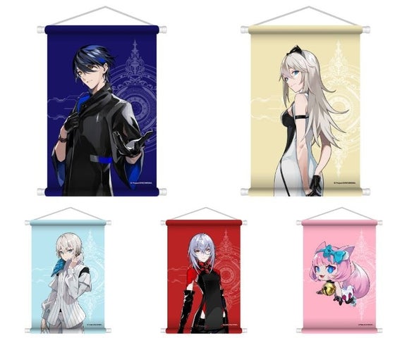 タペストリーやアクリル置き時計など全5種のアイテムがラインナップされています。