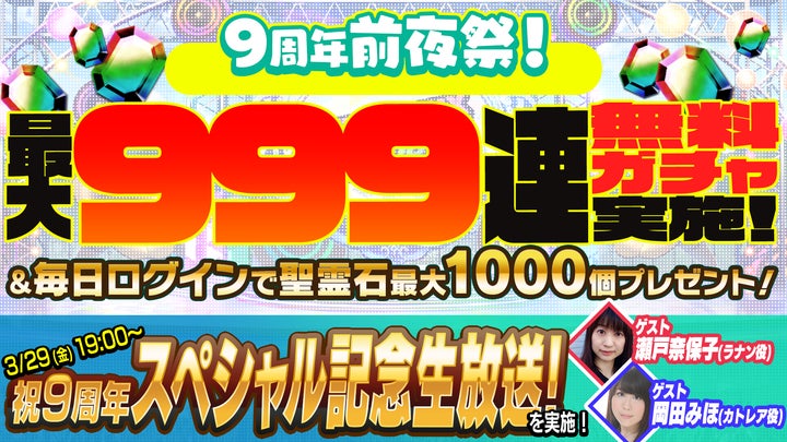 9周年前夜祭や特別生放送が予定されており、キャンペーンも実施中です。