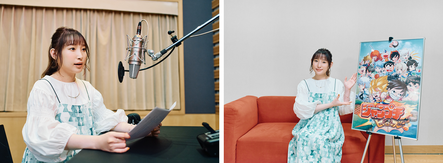 今回、監督から「今回は素の南條さんらしさを出していきたい」とオーダーされた南條さんは、「どちらの言い方がよりいつもの自分らしいか」など積極的に提案と実践していただき、監督と議論を重ねナレーション収録を行いました。テイクを重ねるごとに生まれるバリエーション豊かなナレーションの数々に監督がどれも良くて選ぶのに困る場面も。南條さんのキュートな声が響く「ジャンプチ ヒーローズ」の新WEBCMにぜひ注目してください。