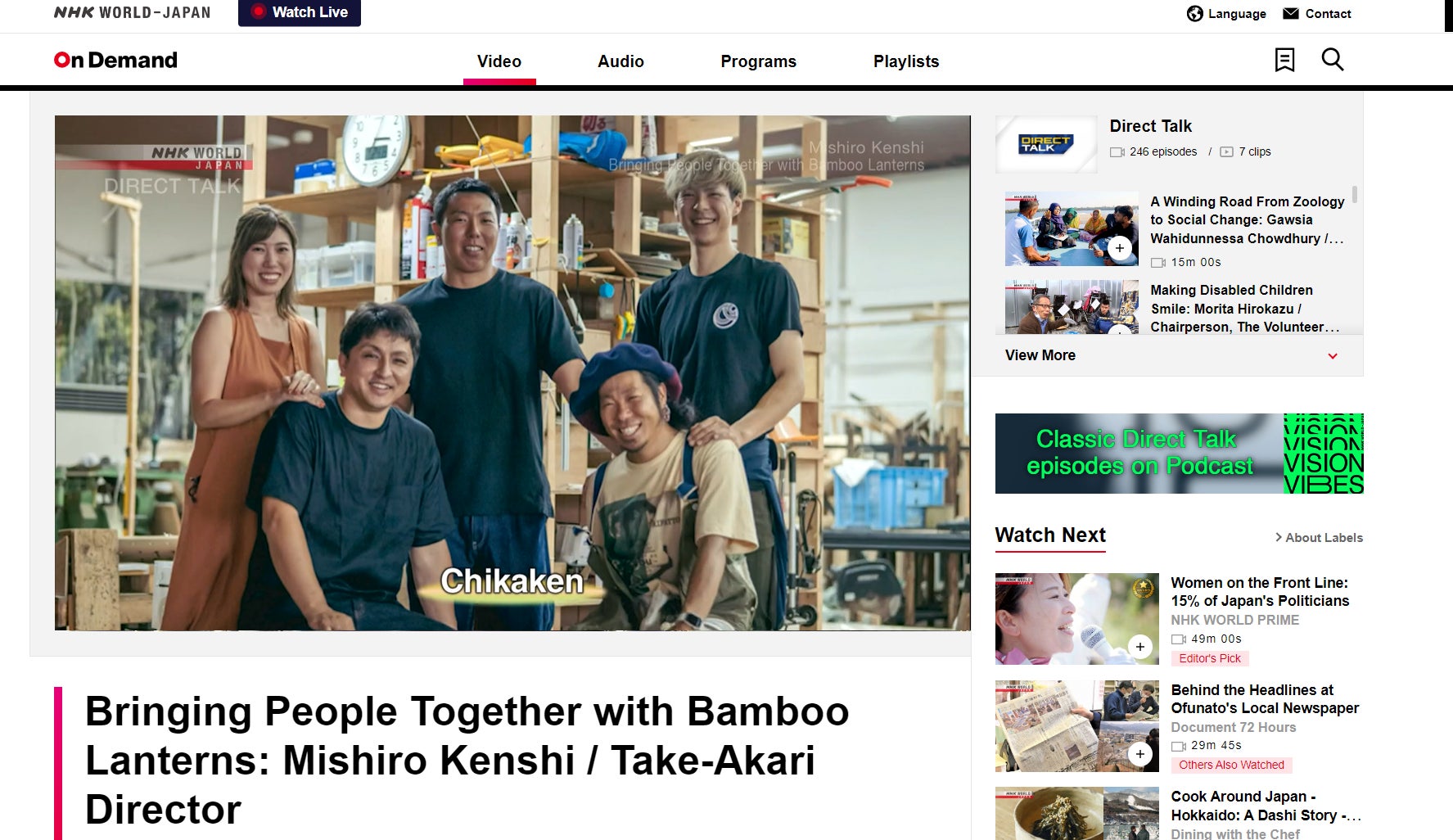 2024年3月12日から13日、IPS出版株式会社がプロデュースする「CHIKAKEN」がNHK WORLD JAPANの番組「Direct Talk」に登場しました。