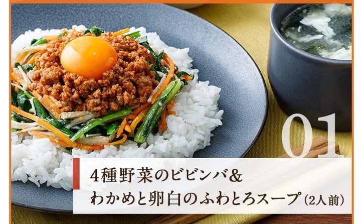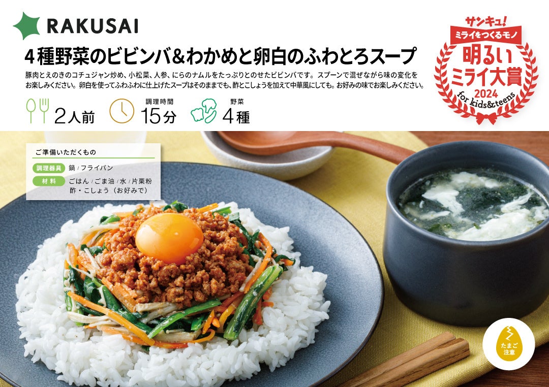 RAKUSAIミールキットお試しセットは、ビビンバやサラダ、デザートが含まれる2人前セットで、2024年3月25日に販売開始されます。
