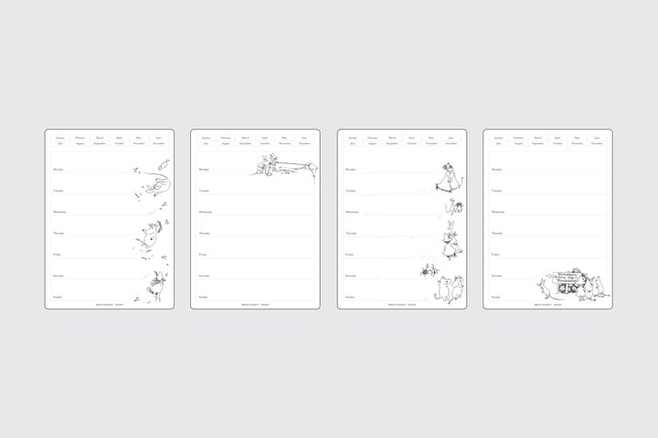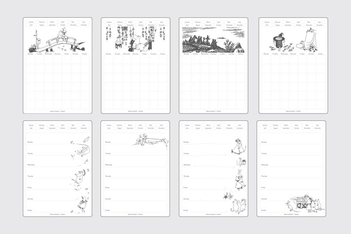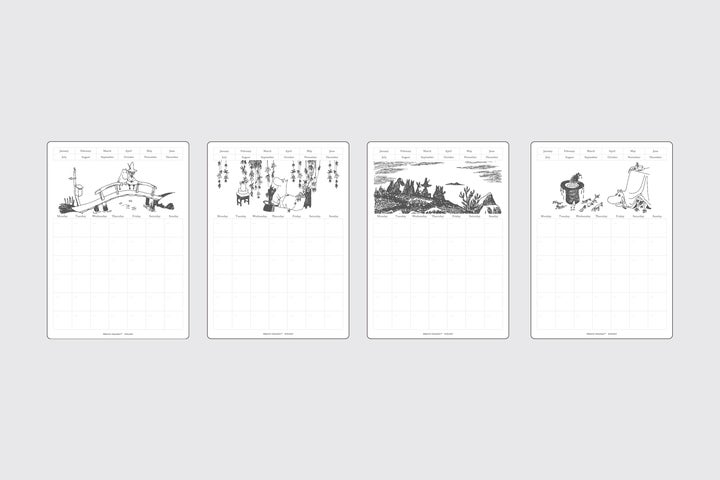 挿絵のデザインは季節やムーミンの世界に合わせて変化し、ムーミンと共に日々を楽しむことができます。