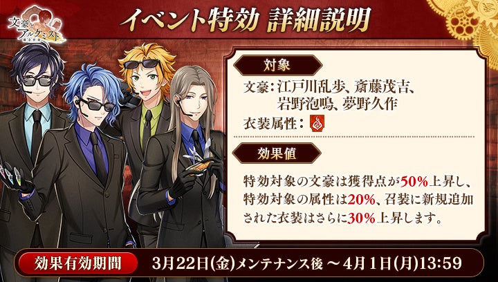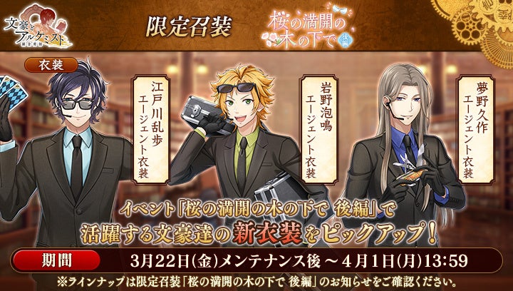 イベント限定ステージで高得点を目指し、斎藤茂吉の〈エージェント衣装〉や特別アイテムを手に入れましょう。