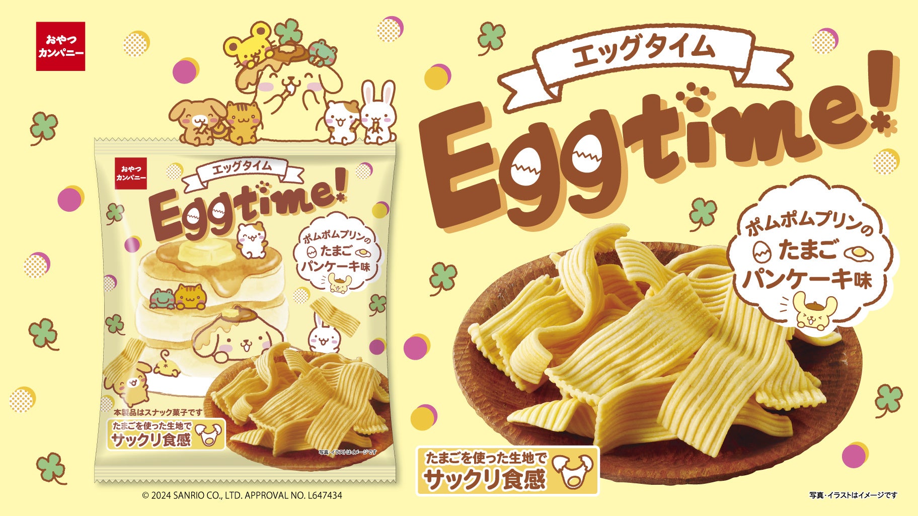 2024年3月25日に発売される新しいスナック菓子『エッグタイム』は、たまごパンケーキ味で、サンリオの人気キャラクター「ポムポムプリン」とのコラボパッケージで登場します。