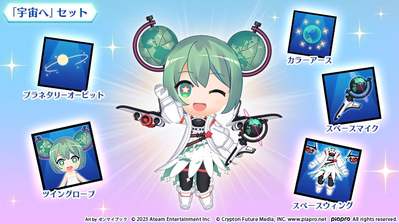人気イラストレーター「ゼンマイブック」氏による、宇宙がテーマの華やかな描き下ろしカットインイラストと新コスチュームが登場!3周年記念カットインイラストと、同様のデザインのコスチュームセットが獲得できる限定パックがショップに登場します。