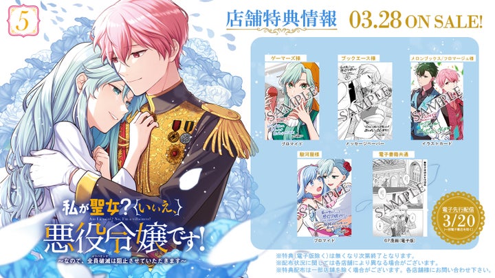 マイクロマガジン社は、3月28日にライドコミックス『私が聖女?いいえ、悪役令嬢です!~なので、全員破滅は阻止させていただきます~ 5』を発売します。