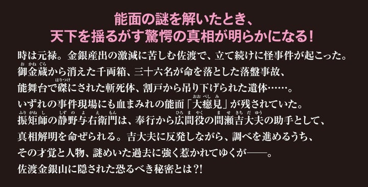 物語では、血まみれの能面が登場し、佐渡金銀山の秘密が描かれます。
